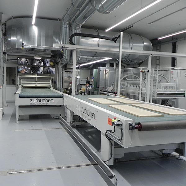 Seventeen years after the first plant, Giardina Group has refurbished the coating line at Zurbuchen Ag in Amlikon, Switzerland, a high-end furniture factory a few kilometers away from Zurich. We must admit that it was the first time in our long career that we travelled to Switzerland to see “live” a furniture industry line made by an Italian company. We were invited by Giardina Group, a leading Italian vendor in the coating business; we were glad to accept and we were really curious, as our idea of “Swiss product” was totally different, and in our industry we expected to come across some business in solid wood or constructions. And instead, it was a different story and we ended up in a wonderful elegant showroom, surrounded by top-quality furniture with excellent design.