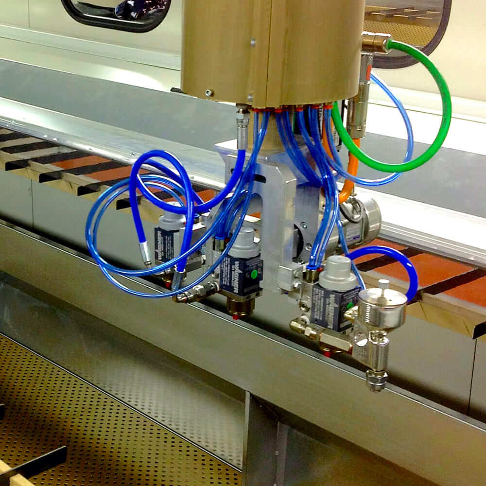 Die Roboter-Spritzanlage ist ein Roboter-Lackiersystem, das in ein Gestellsystem integriert ist und das Spritzen von Gegenständen wie Türen, Platten, und anderen Bauteilen mit jeder Art von Produkten ermöglicht. Dies ist ein Verstellsystem, das in einem kartesischen Roboter mit automatischem Spritzen integriert ist.