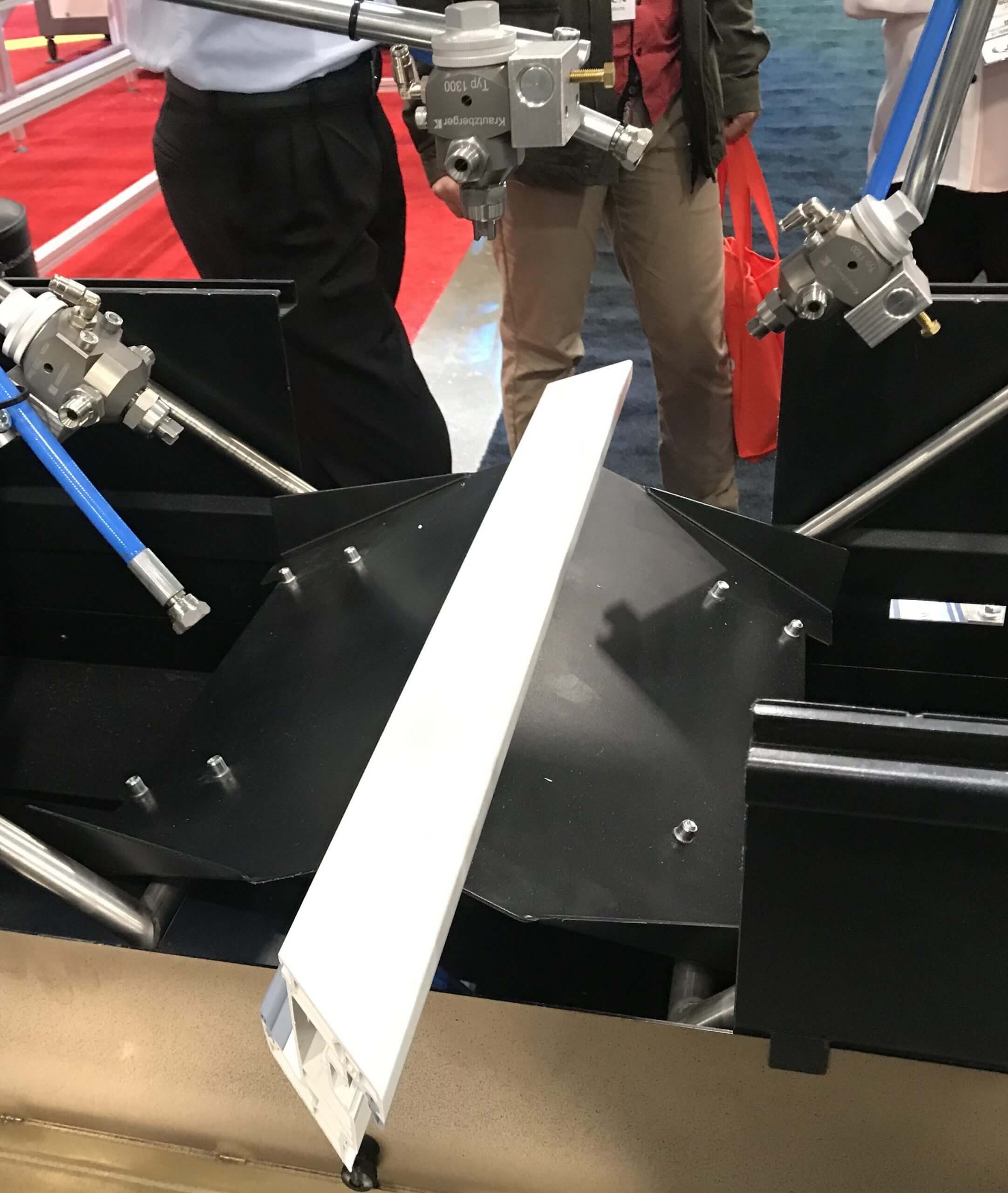 Based at the stand of our local dealer for Pvc and stone, Int-machinery, we were able to present our latest coating solutions for Pvc window and door components. The equipment on display has sold in the fair.
