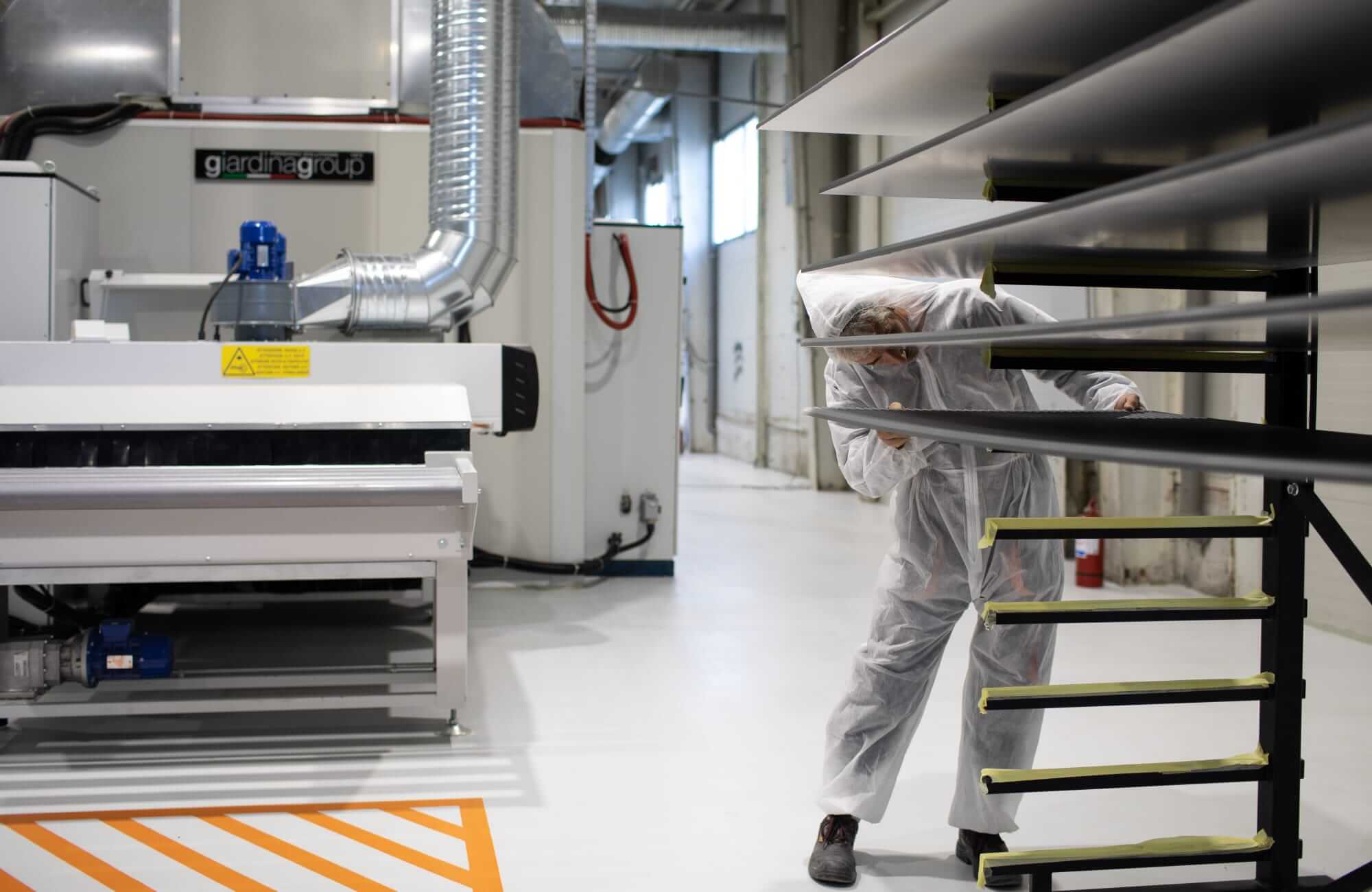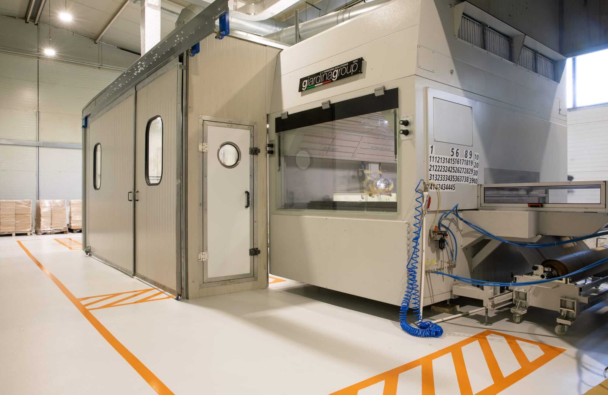 The new Giardina Group automated line consists of a loading bench in a pressurized room, the “Dualtech 420 Sbc” automatic spraying machine with disposable paper system, a multi-deck oven mod. « Gpm/6/6500 » the solution designed for drying paint products in small spaces, and a Uv polymerization oven mod. “Gst 1501/2 – 3 DR”, which allows the polymerization of paint products on all types of flat or shaped supports.