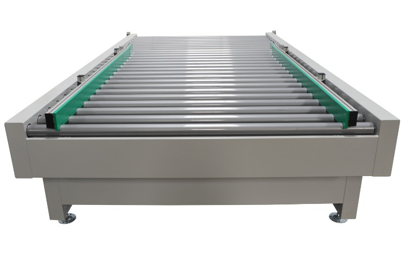 The “Movetech BR 2000” is a linking conveyor featuring free-release rollers coated with solventresistant, antistatic, and high-durability PVC. The rollers are mounted with a pitch of 140 millimetres and include safety profiles for enhanced protection. The minimum transportable piece length is 300 millimetres. Like other « Movetech » series units, it is equipped with an “Atex 3G” electric motor and an IP55 electrical system. The piece passage width is 1,400 millimetres. The conveyor drive system is powered by a gear motor with adjustable speed, controlled by an inverter. The conveyor height is adjustable between 870 and 930 millimetres; the total conveyor length is 2,000 millimetres