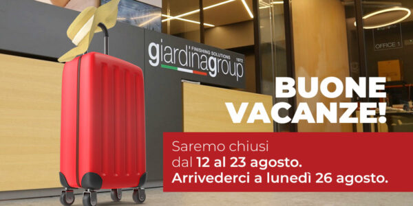 Pausa estiva per Giardina Group: saremo chiusi dal 12 al 23 agosto 2024. Riapriremo lunedì 26 agosto. Buona estate!