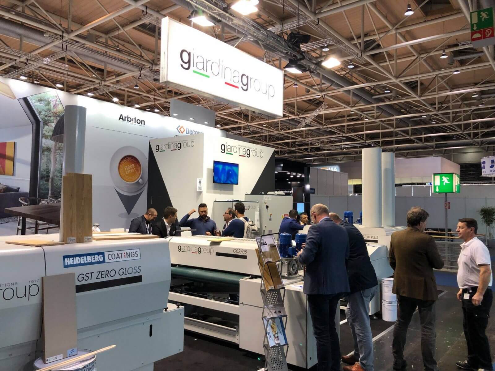 Il nostro interesse si è ovviamente concentrato nei due padiglioni dedicati alle pavimentazioni in legno e derivati dove, in uno stand di un centinaio di metri quadrati, abbiamo presentato la nostra tecnologia agli ECCIMERI “Gst Zero Gloss” in collaborazione con Heidelberg Coatings: con i loro tecnici abbiamo dimostrato quali risultati garantisce una finitura realizzata con questa tecnologia.