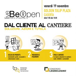 Il prossimo 19 novembre Giardina Group parteciperà a “BeOpen” al Golden Tulip Plaza di Caserta, l’evento organizzato dal Consorzio Legnolegno – il consorzio nazionale che raccoglie un gran numero di produttori di serramenti – dedicato al mondo delle porte e delle finestre e a cui parteciperanno tutti gli addetti ai lavori, dai clienti ai produttori.
