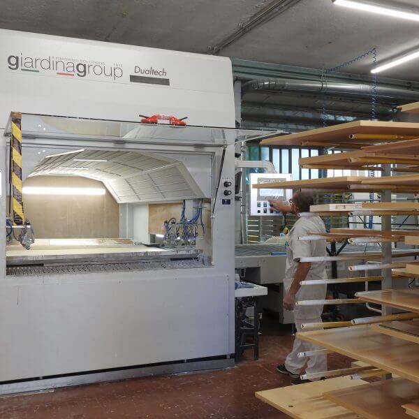 “Assolutamente: grazie alla tecnologia si lavora meglio e con migliori risultati. Abbiamo ancora una cabina di spruzzatura manuale, indispensabile per certi lavori, e carteggiamo ancora a mano certi elementi per avere il massimo risultato, ma è innegabile che la quasi tutto il nostro lavoro passa da macchine che ci permettono di essere assolutamente versatili, perché il mercato oggi è fatto di piccoli numeri. Abbiamo a che fare con clienti sempre più esigenti, che vogliono la perfezione; altri che devono verniciare solo dieci, quindici pezzi, ma sempre con la massima qualità del risultato. E le finiture devono essere sempre più “naturali”, devono permettere di vedere, toccare il legno…
